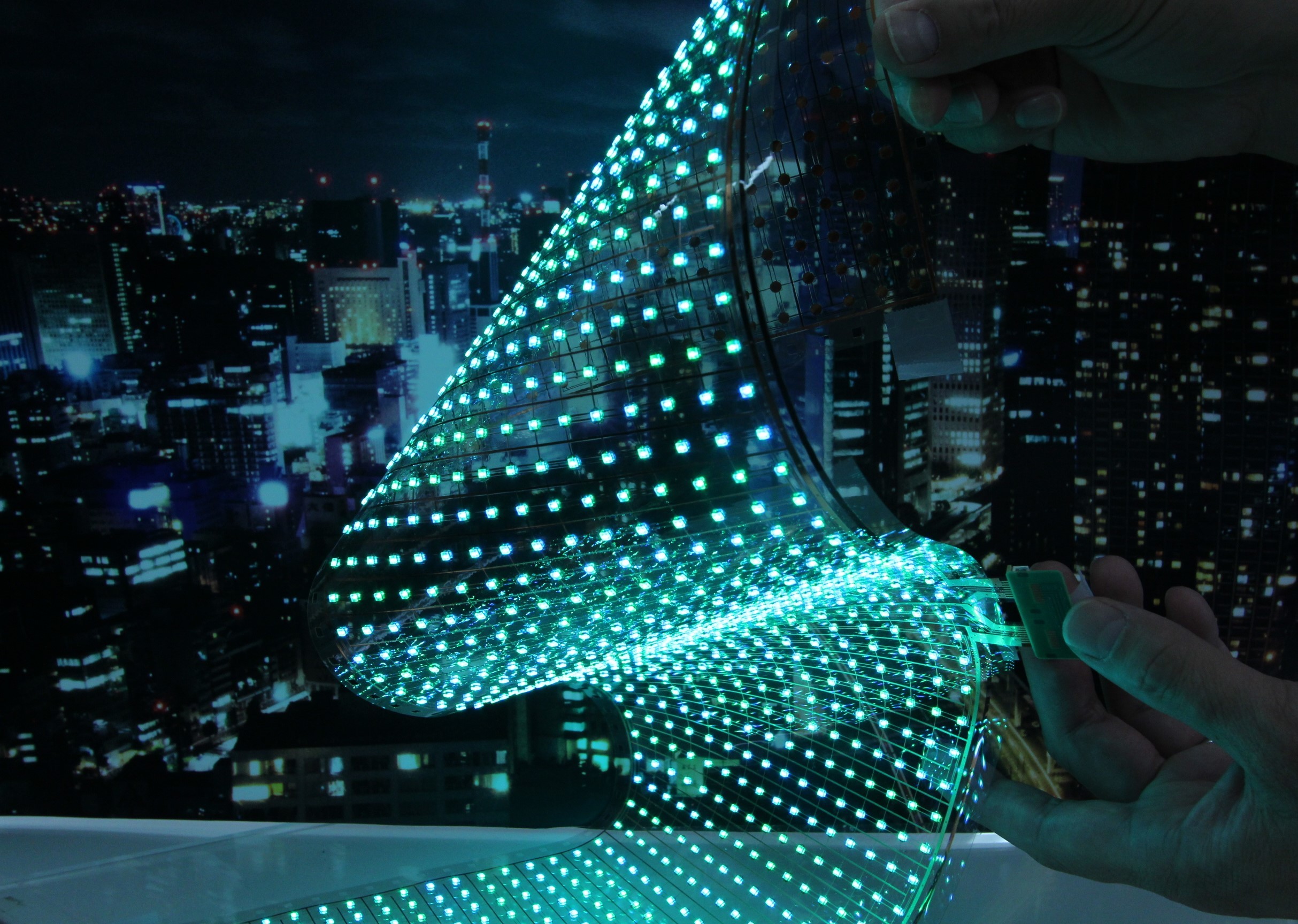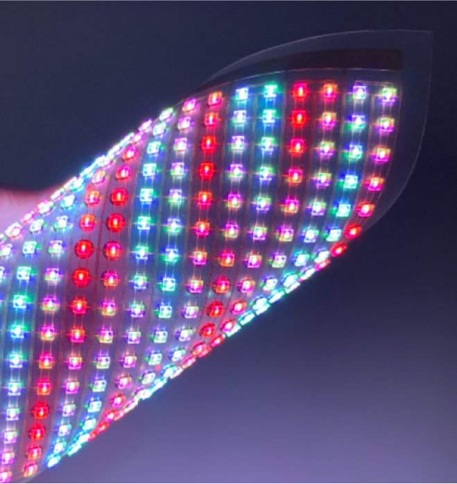 PETフィルムや紙に微細なLEDを実装したフレキシブルLEDモジュールにより、新たなデジタルサイネージを実現可能です。
